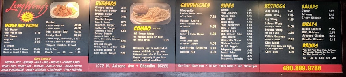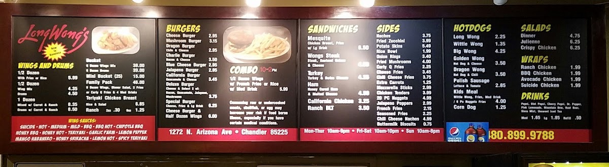 If you’re craving bold, saucy wings and no-nonsense comfort food, the Long Wongs Menu is where things get interesting. Tucked away at 1272 N Arizona Ave #6697 in Chandler, Arizona, United States, this spot keeps it classic and satisfying. The first thing that jumps out is the variety of wings - crispy, messy in the best way, and coated in flavors that range from sweet and tangy to seriously fiery. Whether you’re into traditional buffalo heat or something with a little garlic kick, there’s plenty to explore.